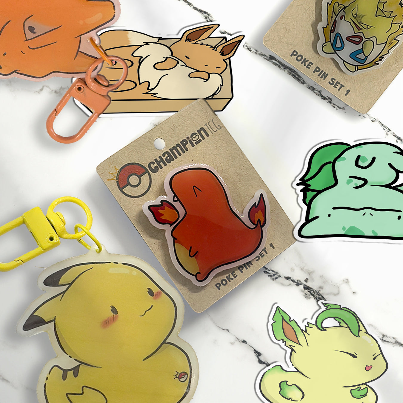 Introducing our NEW handmade swag. We are now offering stickers, keychains and pins with our custom Poke themed graphics. You gotta collect 'em all!